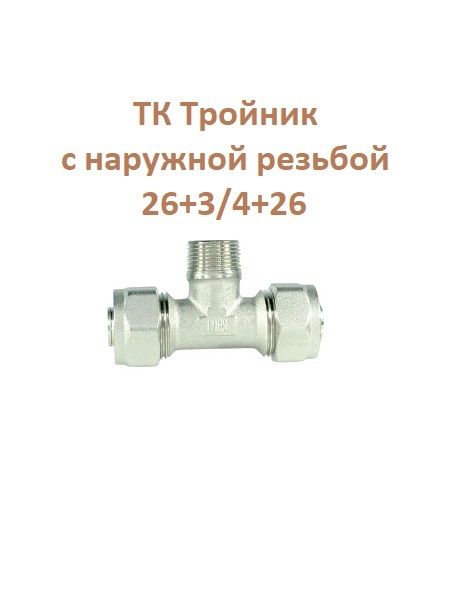 Тройник с наружной резьбой 26+3/4+26 TK под металлопластик обжимной