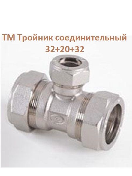 Тройник соединительный 32+20+32 Tiemme под металлопластик обжимной
