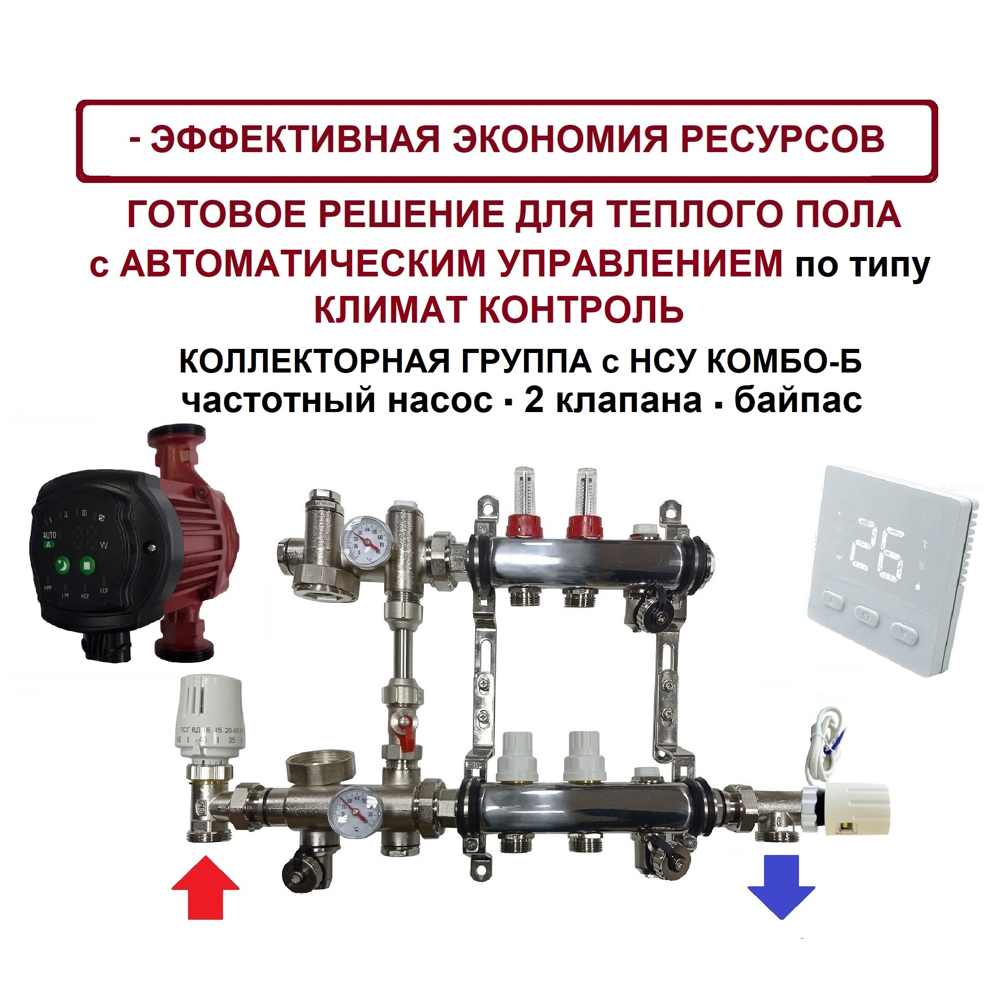 Обновлённый комплект укомплектован насосно-смесительным КОМБО-Б и обладает рядом преимуществ: