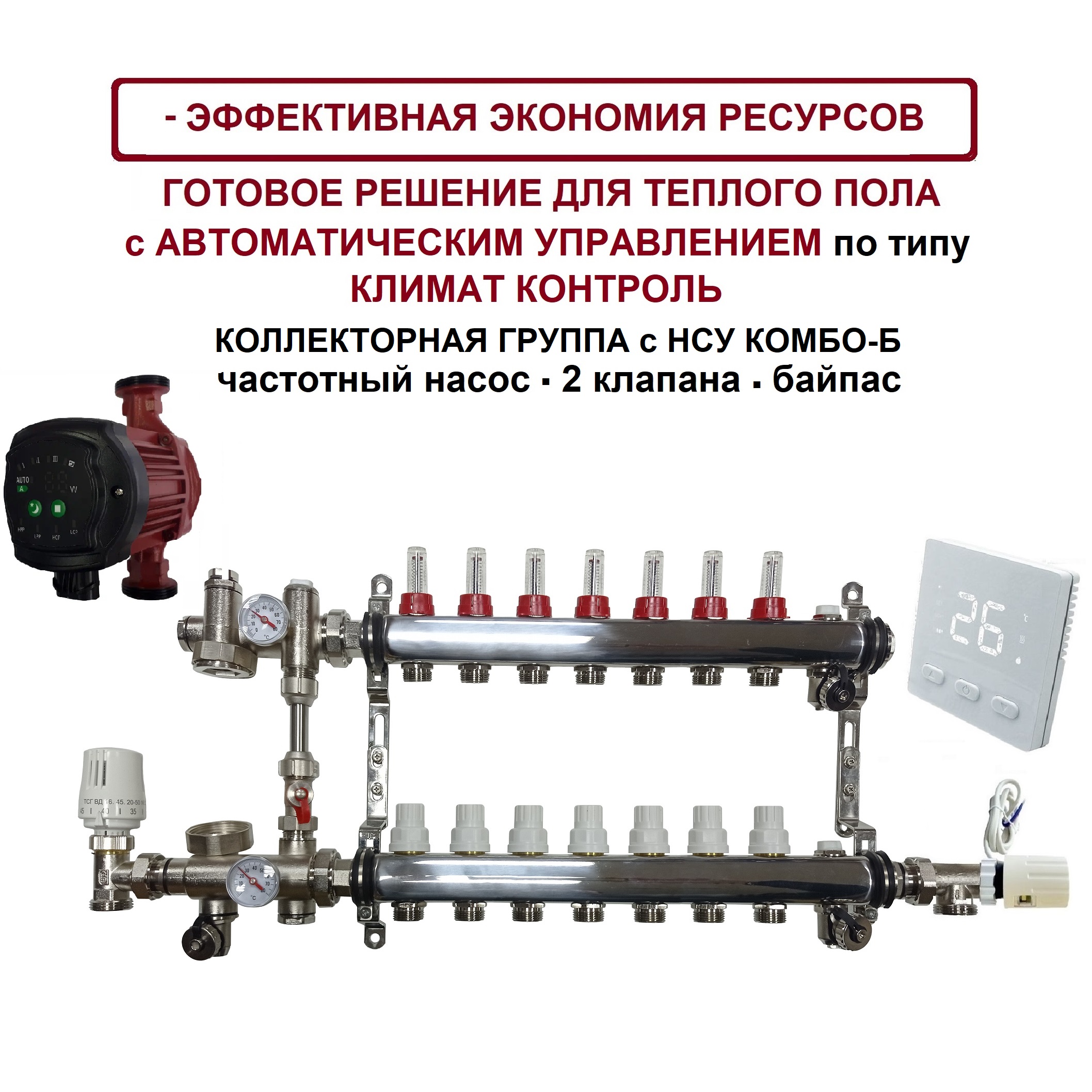 KOMFORT с частотным насосом 7 контуров, комплект коллекторов теплого пола с НСУ КОМБО-Б