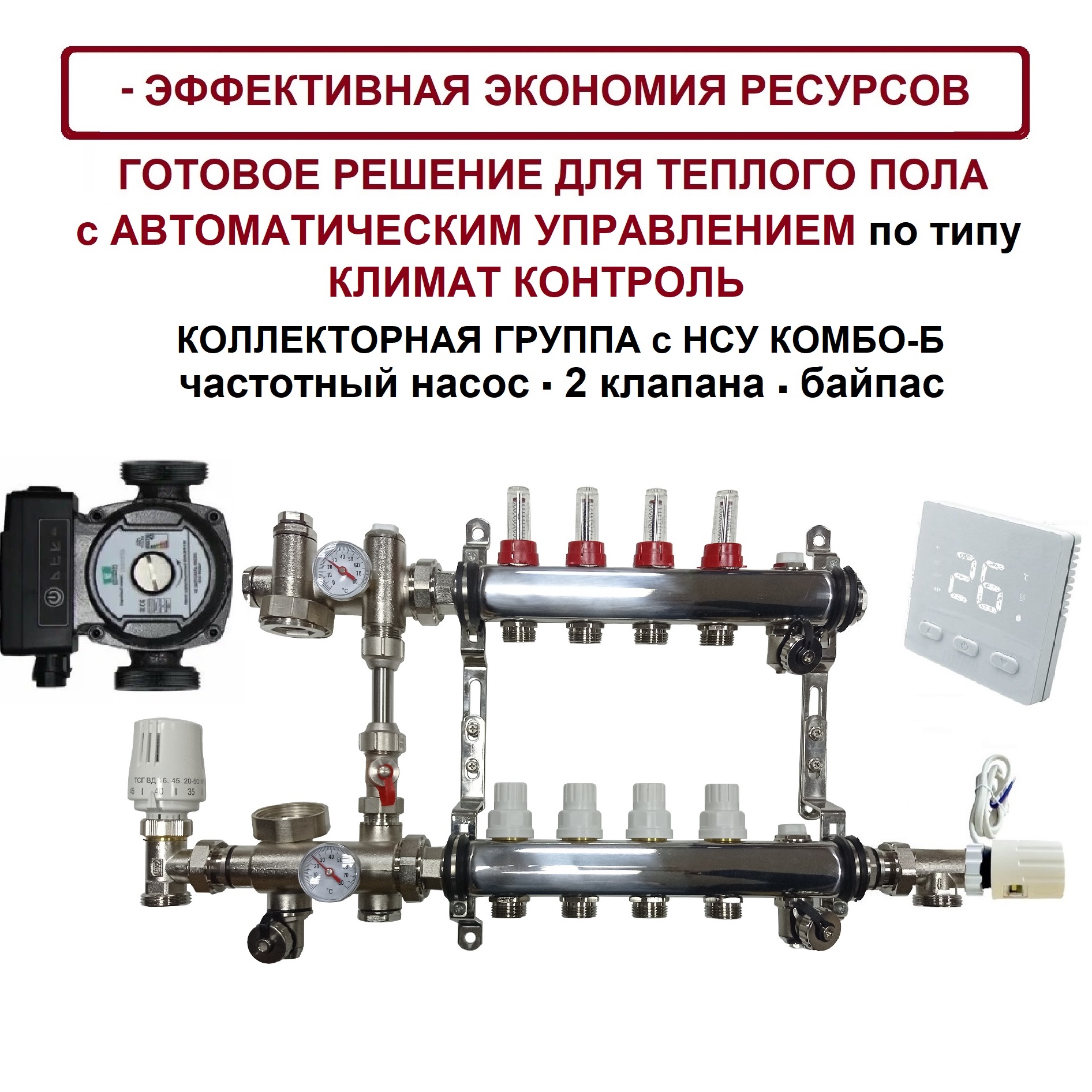 KOMFORT 4 контура, комплект коллекторов теплого пола с НСУ КОМБО-Б с частотным насосом PU