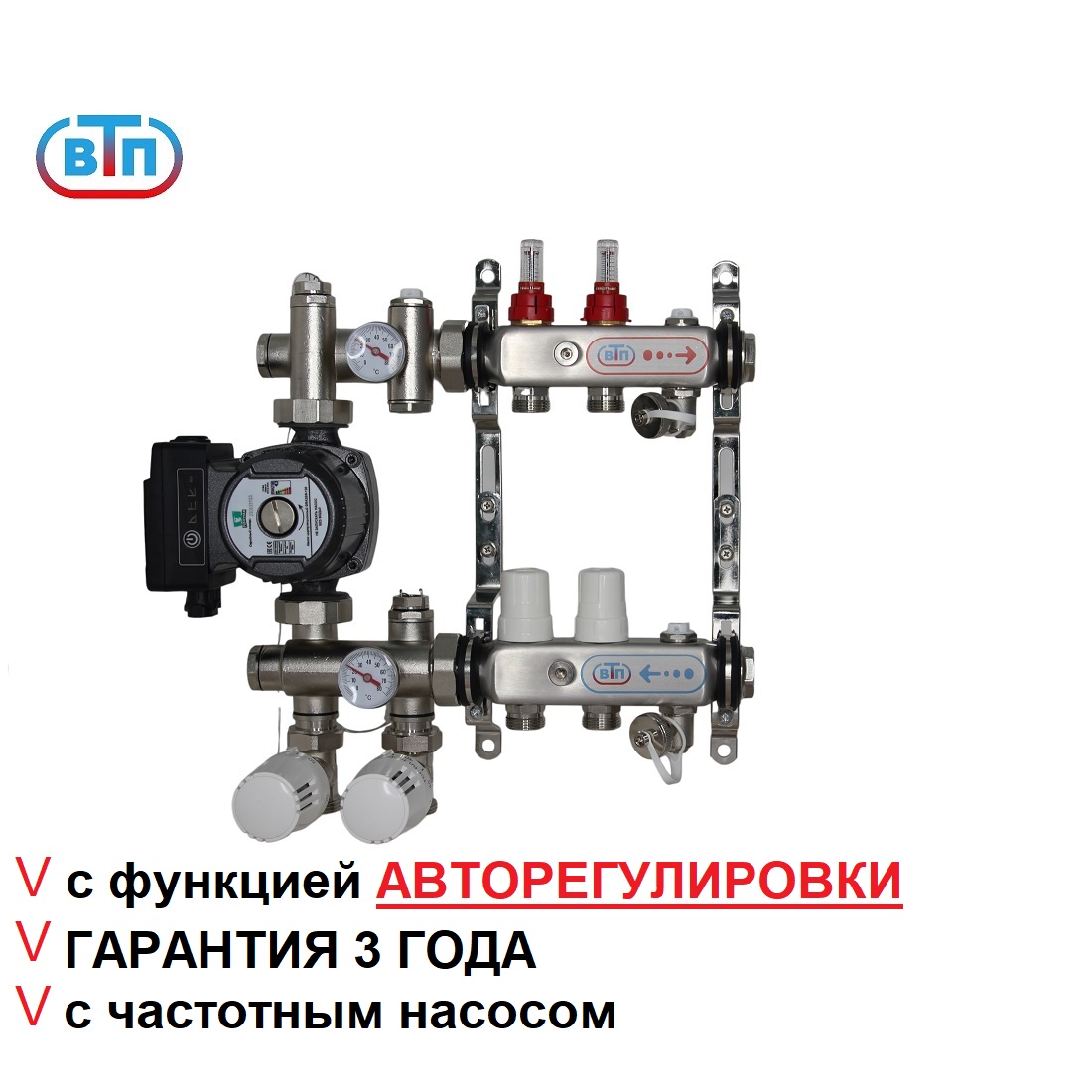 Полный коллекторный комплект -обвязка для водяного теплого пола ВТП КОМБО.П 2 контура с термоадаптивным насосно-смесительным узлом