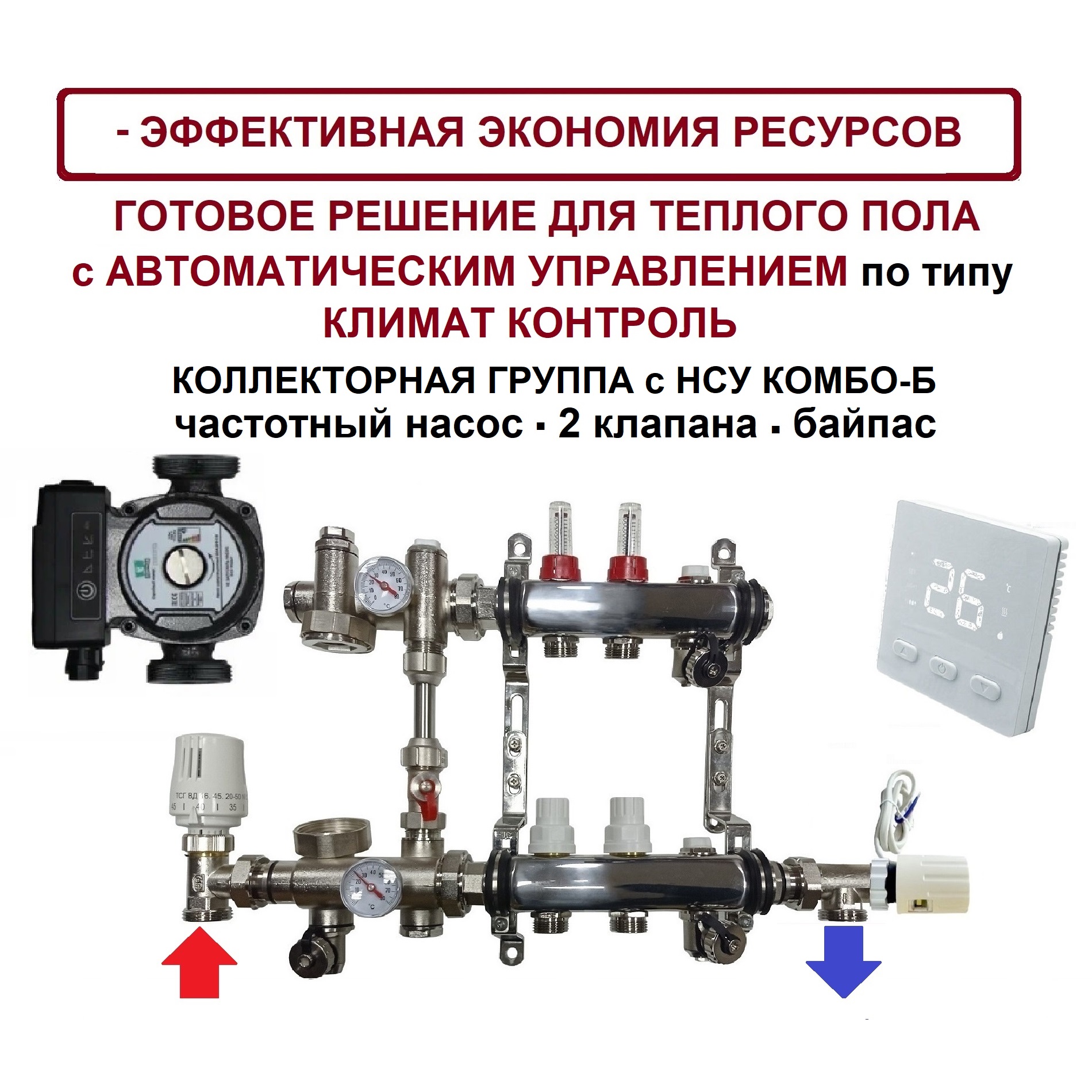 KOMFORT 2 контура, комплект коллекторов теплого пола с НСУ КОМБО-Б с частотным насосом PU