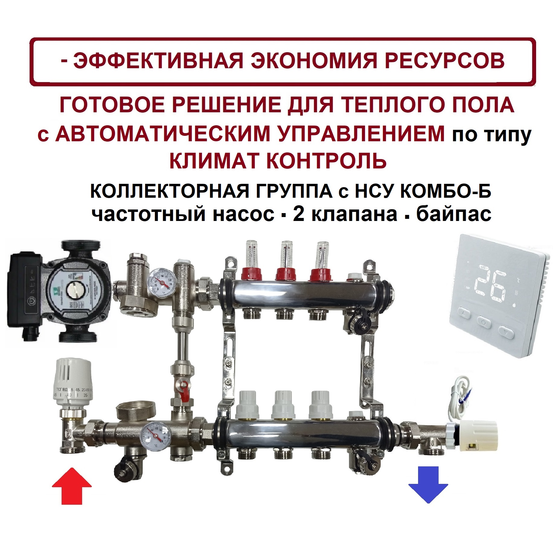 Обновлённый комплект укомплектован насосно-смесительным КОМБО-Б и обладает рядом преимуществ: